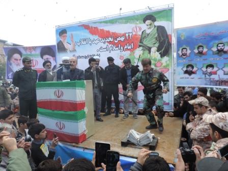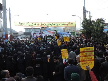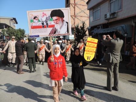 حضور فعّال اقشار مردم در راهپيمايي 22بهمن گلوگاه تفکر آمریکایی ببیند مردم تا پای جان ایستاده اند بعضی فکر کردند مردم امسال نمی آیند حضرت آقا دورت بگردم شما می دانستید مردم باردیگر مشت گره کرده خودشان را برسر آمریکا وتفکر آمریکایی فرود می آورند 37سال اقتدار این یعنی اقتدار ، یهنی صلابت ، یعنی شجاعت ، یعنی وقار ،یعنی بزرگ بودن و تفکر بزرگ داشتند 37سال تحریم 37سال ایستادگی در برابر ناملایمات کوچک ،بزرگ ،زن ،مرد، پیر ،جوان ،دختر ،پسر ،همه آمده بودند چون امامشان آیت الله العظمی الامام سید علی خامنه ایی حفظه الله فرمان داده بود تولیدات داخلی را تقویت کنیم اقتصاد مقاومتی را سر لوحه کار قرار دهیم کور دلان بدانند ، مردم پشت رهبری را هرگز خالی نمی کنند اقتصاد مقاومتی یعنی زنده ماندن اسلام ناب محمدی ما آماده آماده ایم آقا جان لب تر کنید فرمان دهید امسال پرچم آمریکا و اسراییل را در میدان 22بهمن گلوگاه به آتش کشیدیم مشتهای گره کرده را دیدید، چه شد ، سنگ بود ، سخت بود ، اما چون ایمان پشتش بود ماه شکستیم