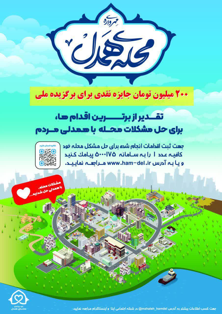 #مهرواره_محله_همدل 🔷 مشکلات محله با همدلی حل شدنیه.... 📣 لطفا برای شروع عدد 1 را به سامانه 5000175 ارسال کنیدـ 📣 شما هم می تونید با مشارکت در این مهرواره و حل یکی از مساله های زیر در رقابت برای کسب رتبه برترین ملی و جایزه ۲٠٠ میلیون تومانی و جوایز ارزنده دیگر اقدام کنید. برچسبها: مهرواره_محله_همدل