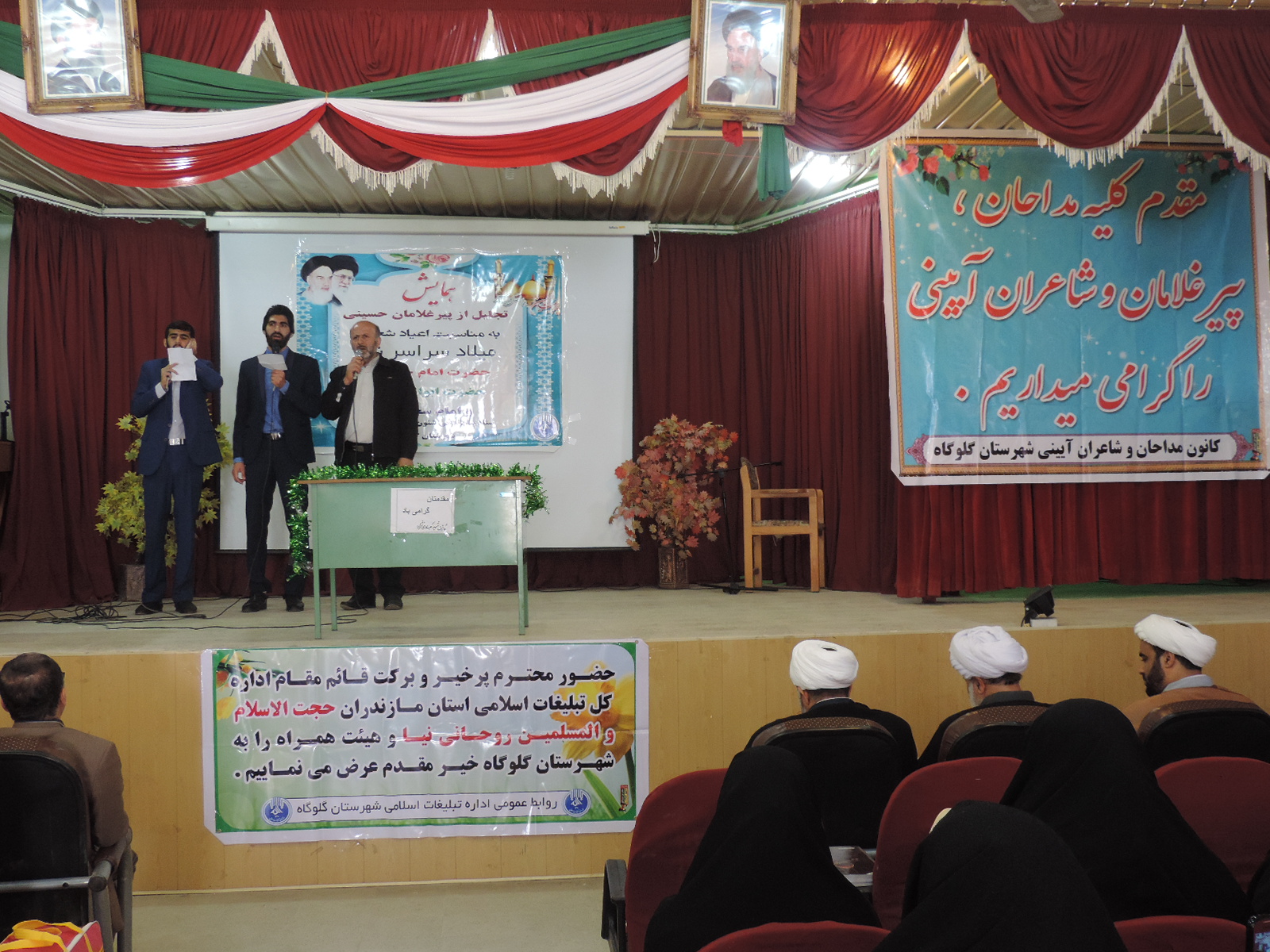 مراسم تجلیل از پیر غلامان حسینی در شهرستان گلوگاه با حضور روحانیون حضور فرماندار شهرستان گلوگاه در مراسم تجلیل از پیر غلامان حسینی شهرستان گلوگاه حضور قائم مقام اداره کل تبلیغات اسلامی استان مازندران در همایش تجلیل از پیر غلامان حسینی گلوگاه